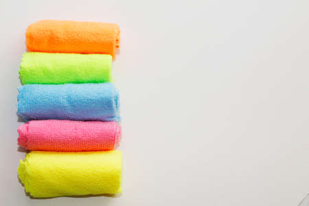 colorful towels isolated on white background, close up