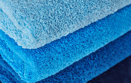 Folded blue cotton towels close-up