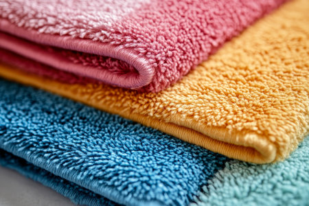 Colorful towels in blue, white, and yellow symbolize professional morning cleaning service at home