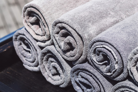 Rolled up fresh bath towels. Beauty, spa concepts.