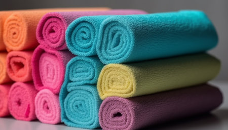 Soft purple towels stacked neatly for freshness generated by artificial intelligence