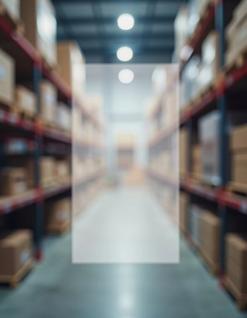 Blur Warehouse goods inventory products stock for logistics shipping background