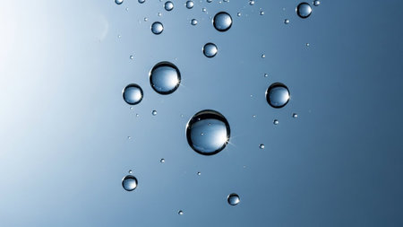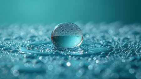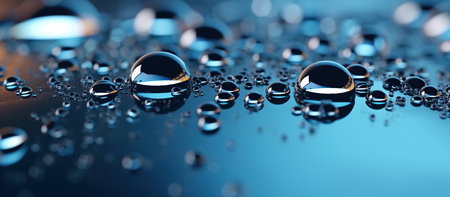 Translucent water droplets on smooth surface with subtle color gradient. That the image is generated using AI.