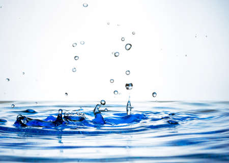 Water splash with small drops in blue background