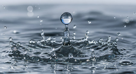 Close-up of a water droplet splash creating ripples, with a soft bokeh effect in the background, showcasing the beauty of motion and liquid dynamics.