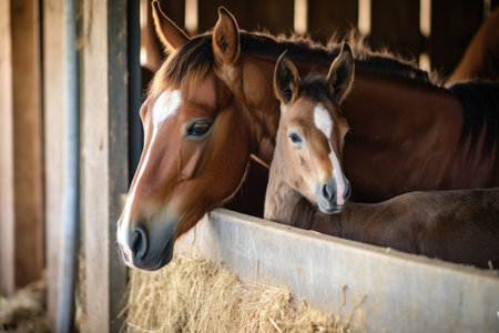 profile view of a horse mid-sneeze, with hay in the background, created with generative ai