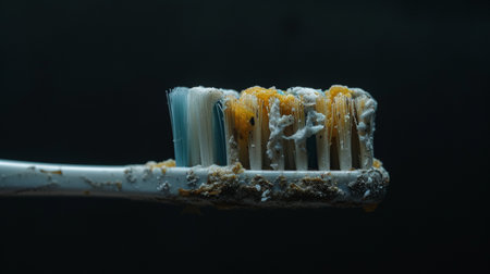 dirty toothbrush cover in yellow and dried toothpaste black background AI generated