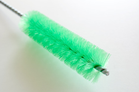 Green eco-friendly brush. Clean home and kitchen copyspace background