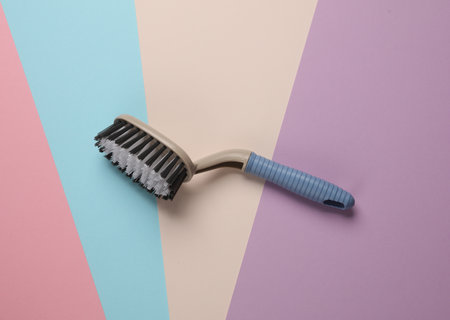 Cleaning brush on color background. Brush for cleaning clothes, carpets. Tool for home care.