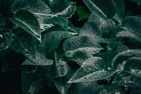 Selective focus closed up tropical summer green leaf background with dark color tone