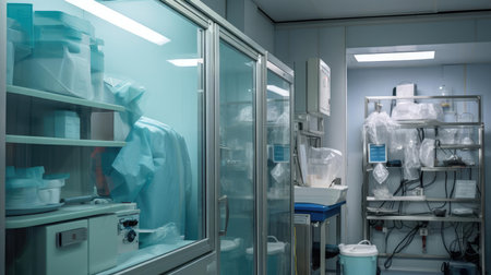 Sterilization Process: decontamination process of medical equipment on a factory line. Generative AI