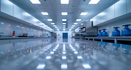 modern interior science lab with lighting from gateway, hospital background, factory background