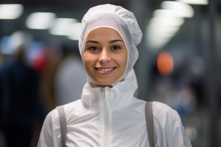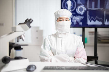 Portrait of a female scientist in protective clothing standing in a laboratory