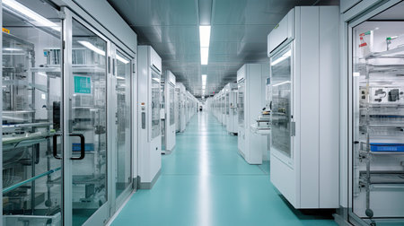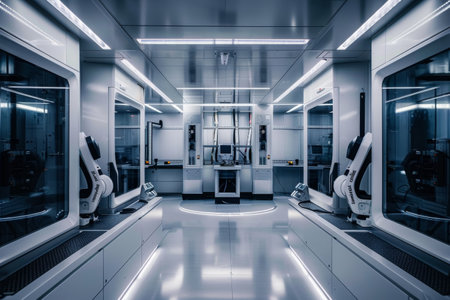 cleanroom with robotic arm providing close-up view of sterile environment, created with generative ai