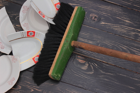 House cleaning. Broom. Bearded man with broom. Cleaning and disinfection. Professional cleaning. Cleaning service. Clean up. Clearing tools. Household. Housekeeping. Besom
