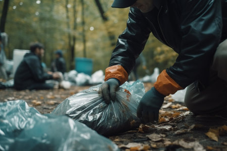 closeup shot of a person wearing gloves while sorting through garbage, created with generative ai