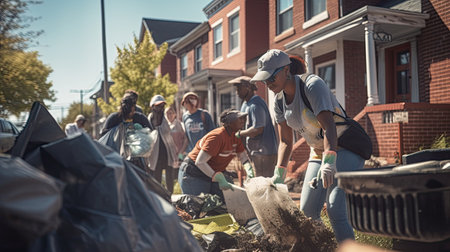 A dedicated woman volunteer carefully sorts waste for recycling during a community cleanup event, promoting environmental responsibility.