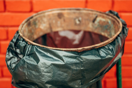 Hand throwing away used infectious masks and medical glove in the trash bin. Coronavirus trash. COVID-19 Medical Waste. Used personal protective equipment PPE. Plastic pollution after the pandemic