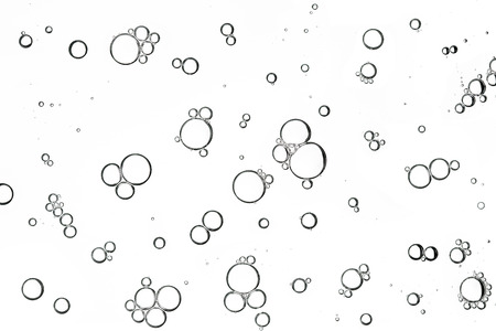 closeup of air bubbles in water with blurred background, black and white