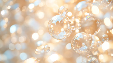 AI Generated. Delicate Bubbles with Glowing Sunlight Background