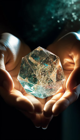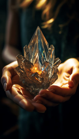 Generative AI : Womans hands holding crystal Concept of occult symbolism and spiritual practice
