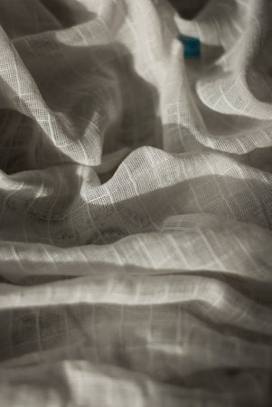 White silk organza with wavy piping. Border around the edge of the fabric. Abstract background. texture pattern. Silk organza has a delicate open weave. Wave background. Copy space