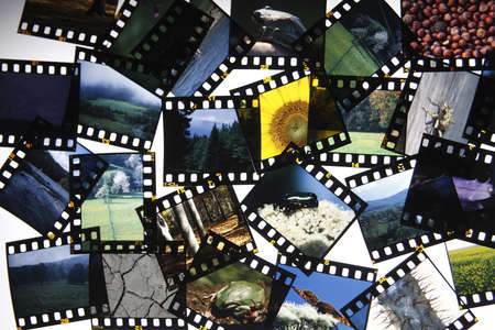 Photography slides or transparencies on white with copy space
