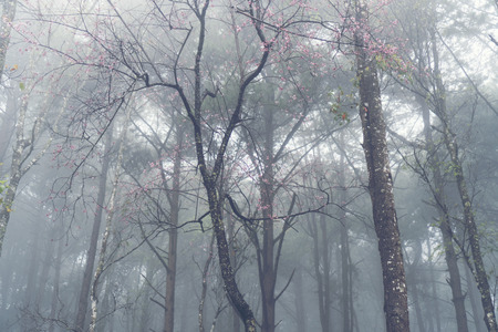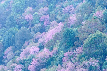 Wild Himalayan cherry blossom in Phu Lom Lo, or it is called cherry blossom of Thailand.