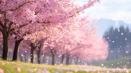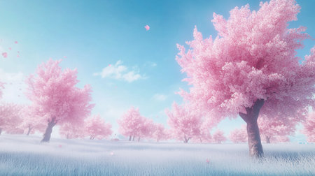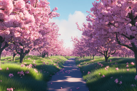 Cherry blossoms in full bloom in the park, 3d render