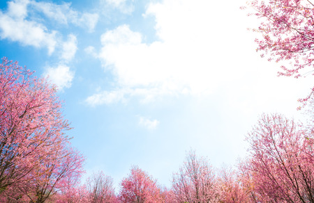 Worm view of Wild Himalayan Cherry Prunus cerasoides at Khun Mae Ya, Chiang Mai, Thailand.