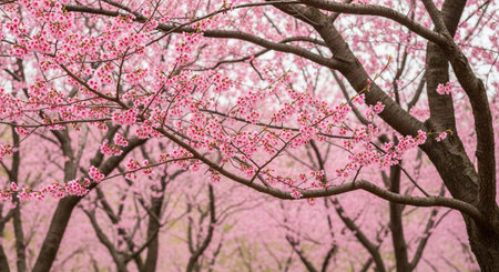 Cherry blossoms in full bloom in a park in springtime