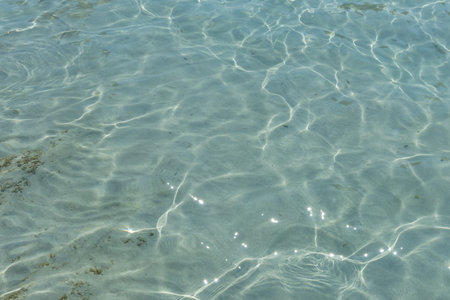 Capture the mesmerizing beauty of sunlight reflecting on the surface of crystal clear ocean water, showcasing the tranquility and serenity of nature.
