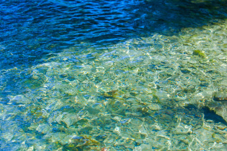 Nature background with turquoise sea water and its reflection with soft selective focus. Summer or travel concept