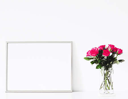 white portrait frame mockups, Scandinavian interior neutral color palette.