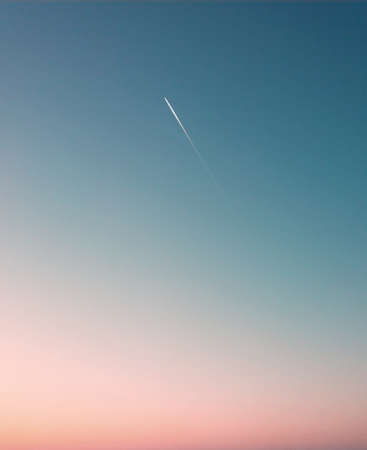 A lonely airplane`s contrail captured in the sky above Livorno, Tuscany, IT