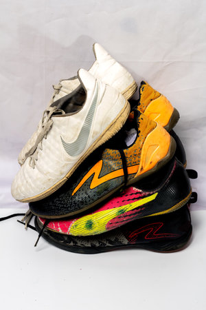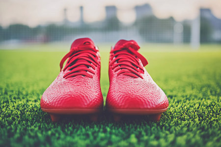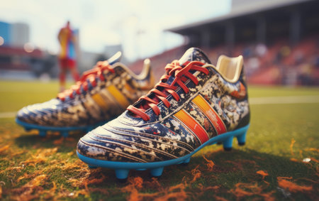 close-up of sneakers and cleats on the athletic field, created with generative ai