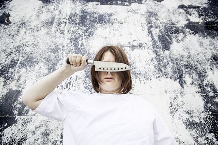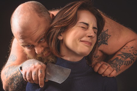 A man with a knife in his hand is the embodiment of a tense moment where crime becomes reality.