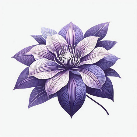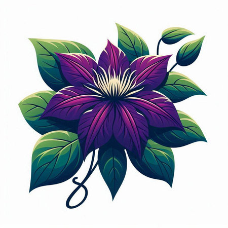Beautiful purple clematis flower isolated on white background. Vector illustration.