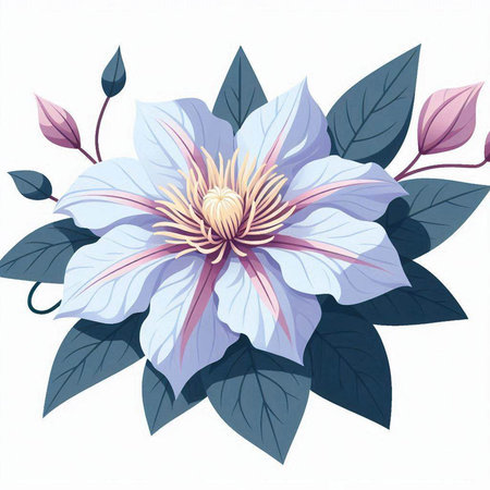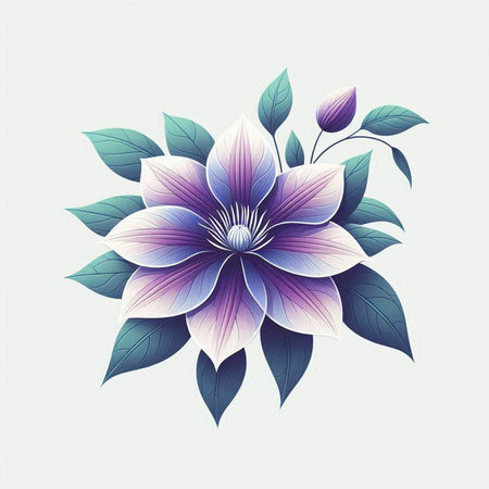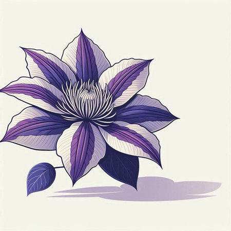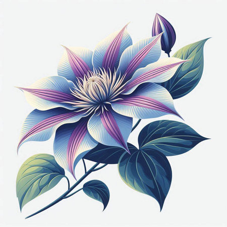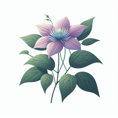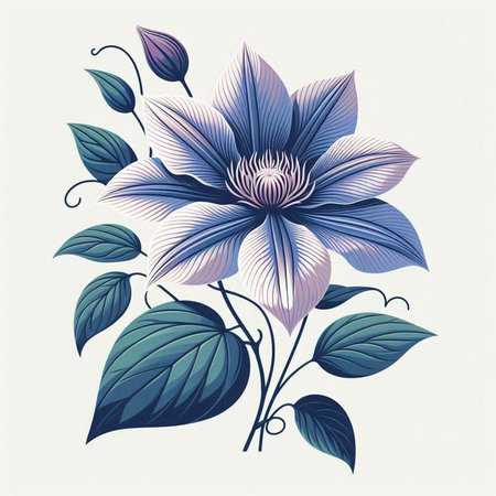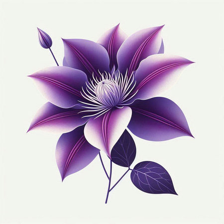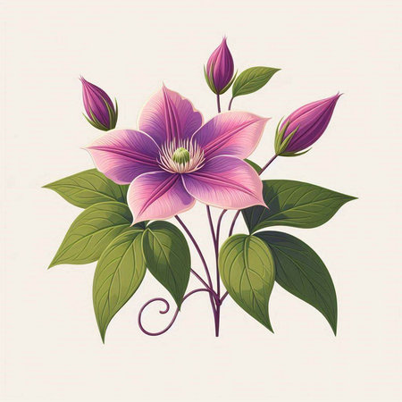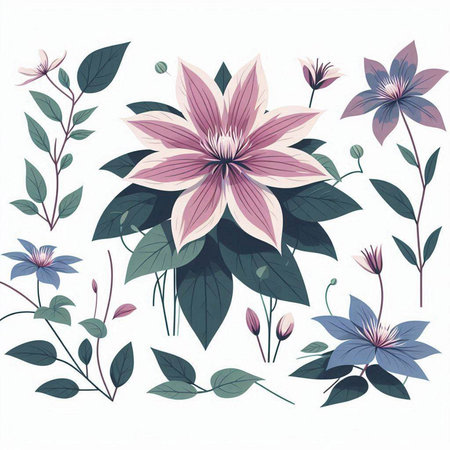 Beautiful purple clematis flowers on a light background. Vector illustration.