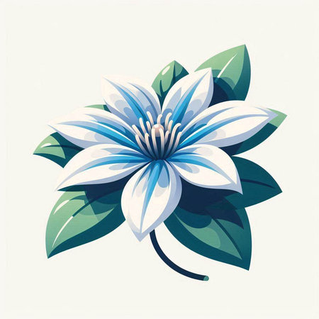 Beautiful blue flower with green leaves on white background. Vector illustration.