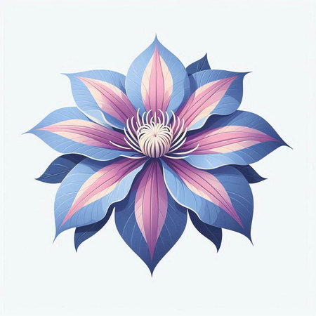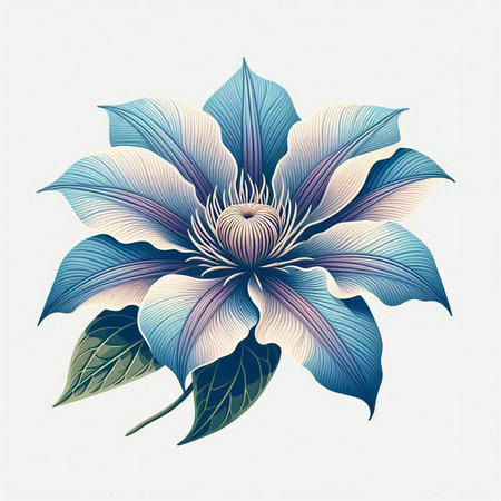 Beautiful blue flower with a lot of leaves. Vector illustration.