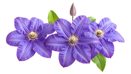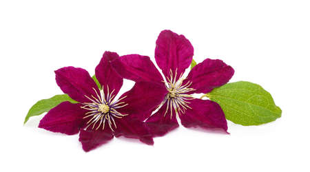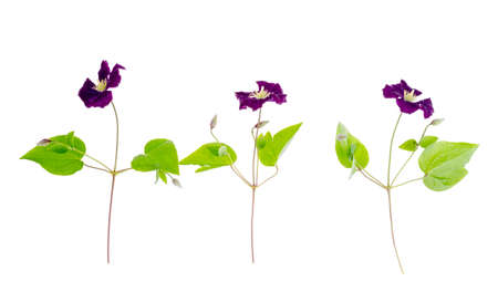 Clematis Jackmanii flowers,buds and leaves isolated on white
