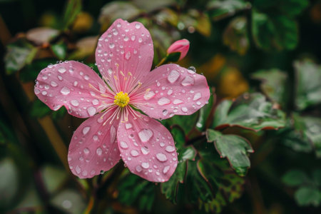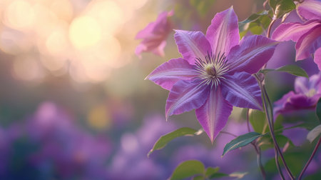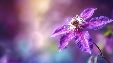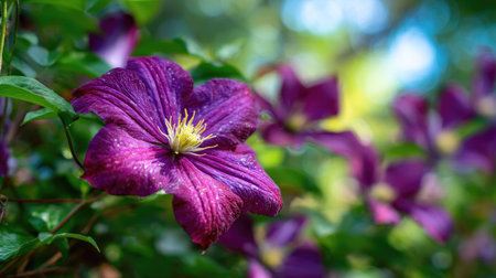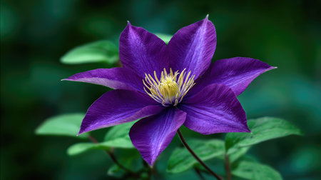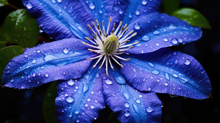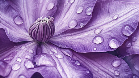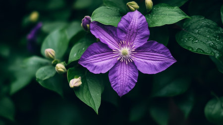 Fresh Purple Clematis Flower Covered with Dew, a Perfect Nature Scene