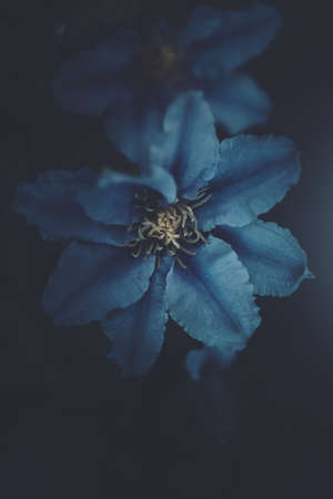 Beautiful background of black clematis flowers. Wonderful natural background. Black flowers