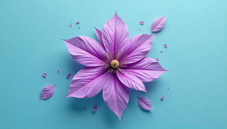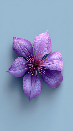 A close-up shot of a vibrant purple flower against a soft blue backdrop, highlighting its delicate petals and intricate details.