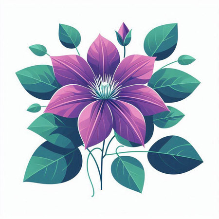 Beautiful purple clematis isolated on white background. Vector illustration.