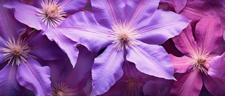 Clematis flower macro with a focus on velvety textures. Purple clematis in detail, showcasing petal patterns.