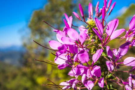 Spider plant blooming with beautiful purple flowers
