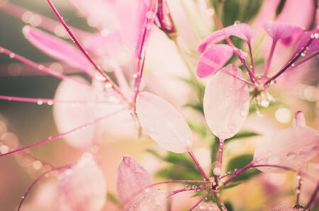 Natural background of Pink Spider flower with water drop