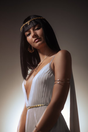 young girl dressed in Cleopatra costume, pose, studio shot,